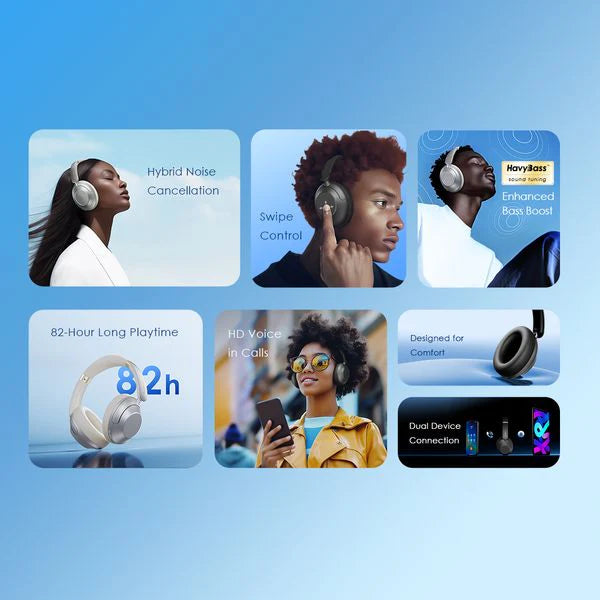 Casque audio sans fil Oraimo BoomPop Pro, 82 heures d'autonomie, hybride, ANC, supra-auriculaire, contrôle par glissement, OHP-917