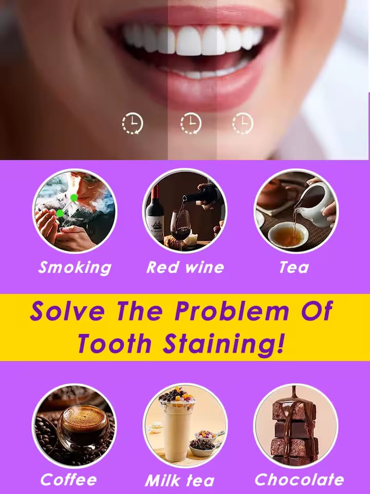 Obtenez des dents visiblement plus blanches grâce à notre dentifrice violet correcteur de couleur. Sa formule innovante aide à neutraliser les tons jaunes pour un sourire plus lumineux dès les premières utilisations.